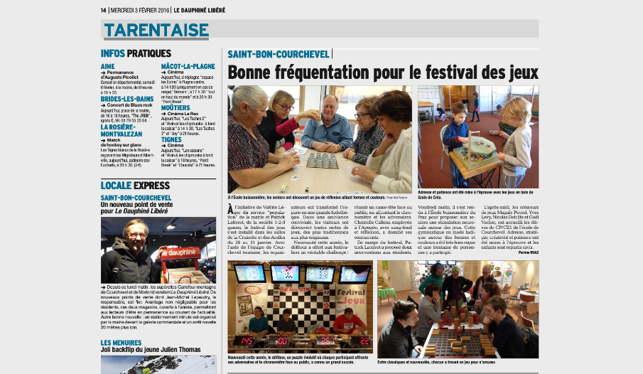 À la demande des instances politiques locales, une séance de jeux de mémoire avec la gamme cirKle (conçue et éditée chez 123-Games) a été programmée in situ à la maison de retraite du Pras, en bas de la célèbre station. Elle était animée par Patrick LATERROT, organisateur du Festival et auteur de jeux.